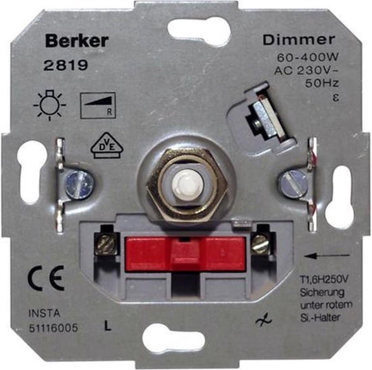 Berker 2819 dimmer – Inbouw – 230V verlichting en halogeen zonder transformator – 60 tot 400 watt