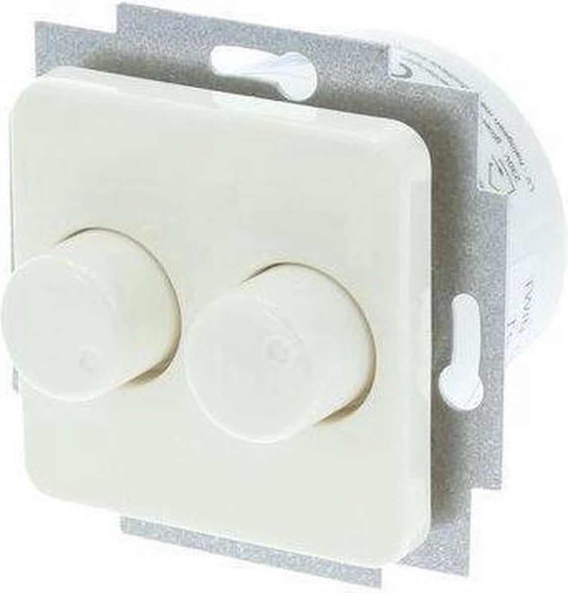Deze dimmer bevat 2 knoppen die doormiddel van draaien in en uit te schakelen zijn. Tevens kan men doormiddel van draaien de lamp dimmen. Je kunt altijd je eigen samenstelling van schakelmateriaal in de muur maken, bijvoorbeeld een combinatie met ook een stopcontact en/of radio/tv aansluiting.