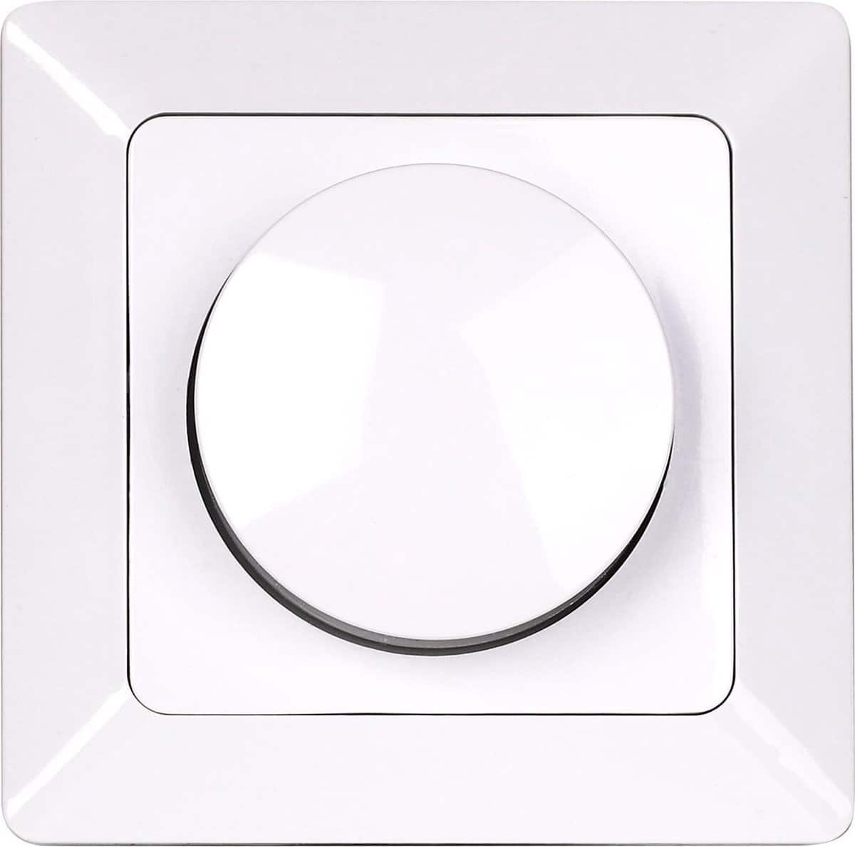 Deze inbouw LED dimmer past in elke inbouwdoos waar al een bestaande schakelaar of dimmer in gemonteerd zit. De achterkant van deze dimmer heeft een ronde afwerking met aan de zijkanten klemveren waardoor het goed in de wand blijft zitten. Het raamwerk is spierwit en inbegrepen. Afdekplaten van andere merken passen niet standaard op deze LED dimmer.