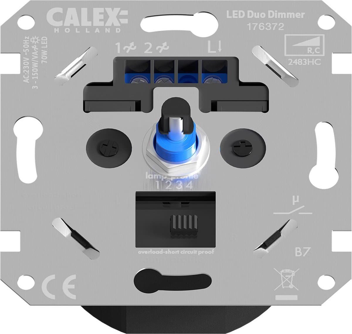 Voor als je lampen niet altijd op volle kracht wil laten branden en een fijne sfeer in huis wil creëren heeft Calex nu een eigen inbouw dimmer ontwikkeld. De dimmer is voorzien van de nieuwste technieken en is uitstekend geschikt voor led. De dimmer is te gebruiken voor gloeilampen, halogeenlampen en spaarhalogeenlampen tot 150 watt. Voor LED lampen kan deze gebruikt worden tot 70 watt. De meeste moderne afdekramen zijn op deze dimmer toepasbaar. Je dient wel rekening te houden met de pin voor de druk knop, deze is 6mm. De diepte van de dimmer is 3,2 cm en verder is deze dimmer perfect geschikt voor hotelschakeling.