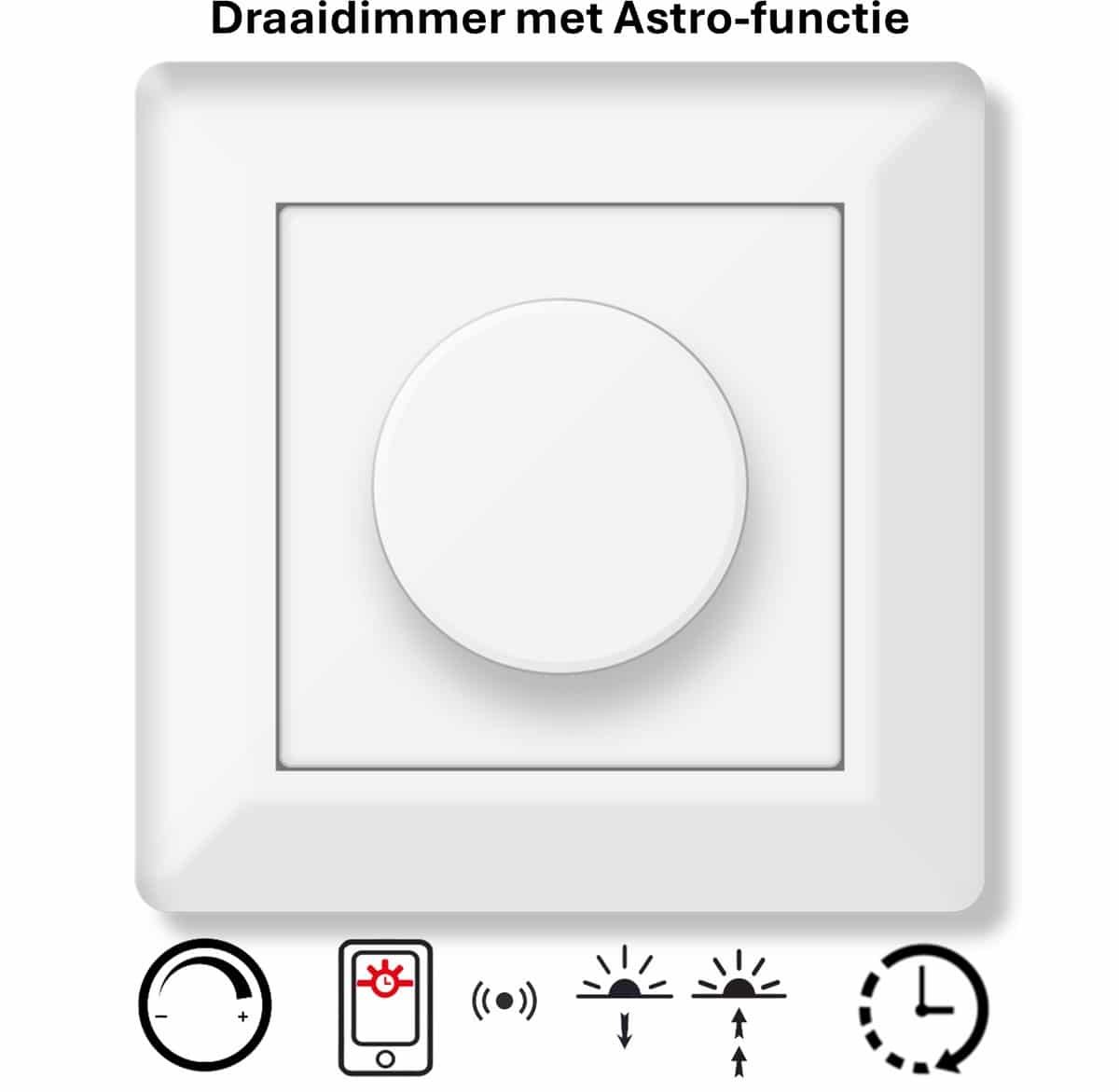 Freelux Draaiknop | Astro-schakelklok met app | led-dimmer | 230VAC – 250VA/1,1A | Zuiver wit glans