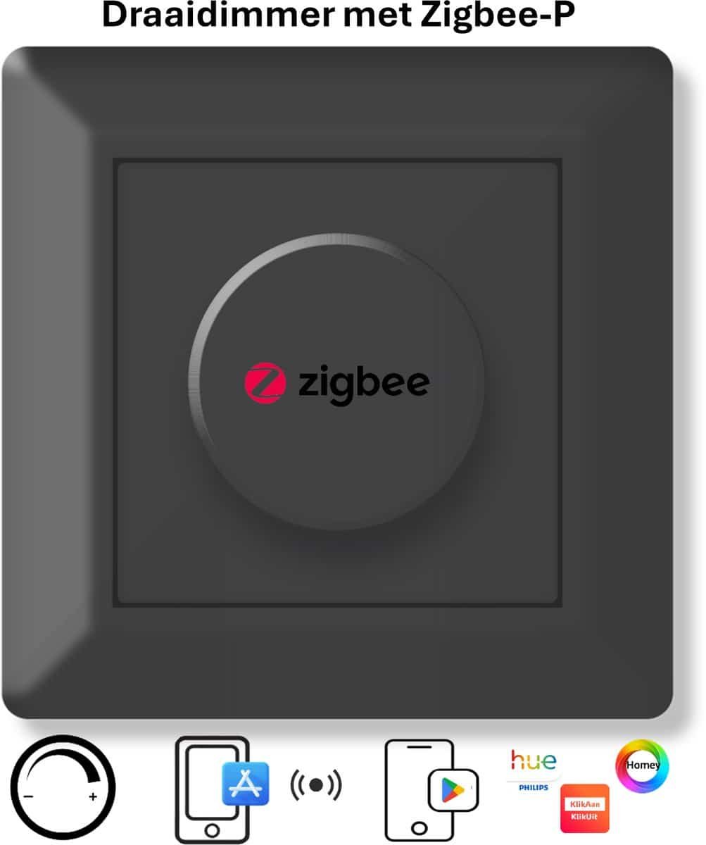 Voordelen: Met deze draaiknop is de verlichting niet alleen op de wand te bedienen maar ook via diverse Zigbee apps.
