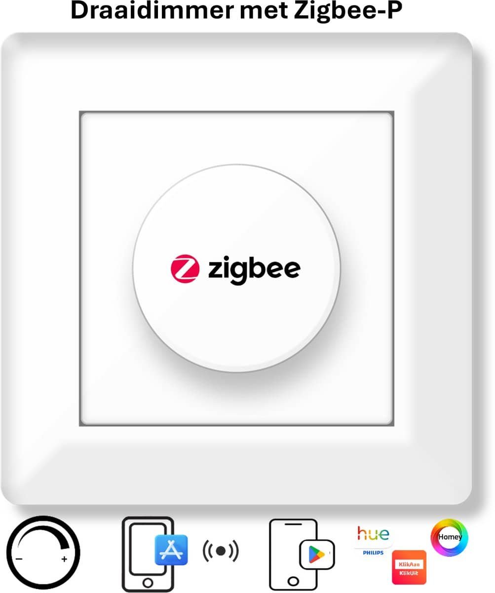 Voordelen: Met deze draaiknop is de verlichting niet alleen op de wand te bedienen maar ook via diverse Zigbee apps.