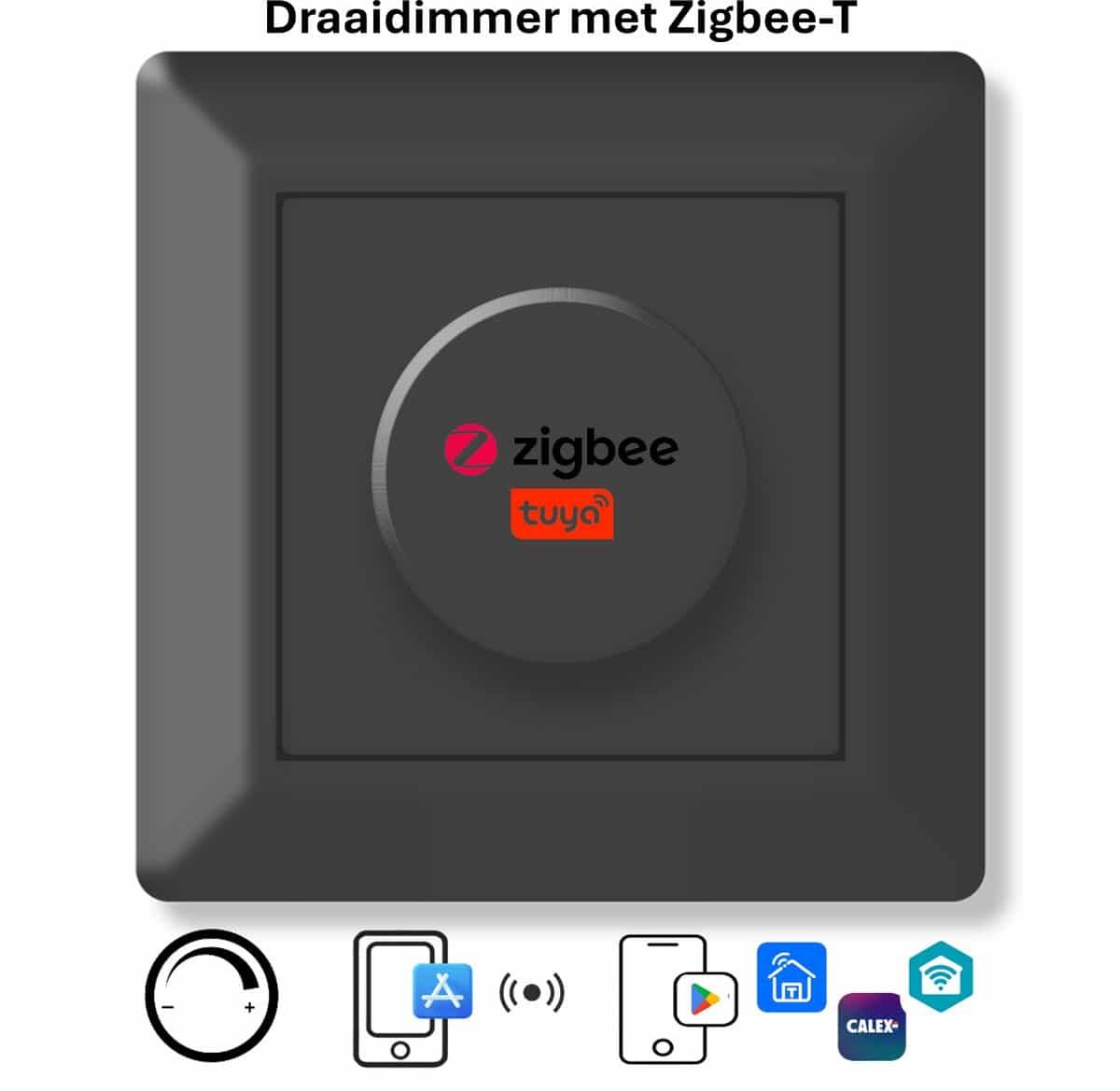 LET OP! Niet geschikt voor de Philips Hue, Homey, KlikAanKlikUit app. Kies daarvoor de Zigbee-P draaiknop module. Afhankelijk van het soort ledverlichting kan bij toepassing van vele kleine lampjes/spotjes van 3W -5W een enkele blijven gloeien bij de uitstand. Monteer in dat geval een dimmer stabilisator parallel aan het armatuur (bijv. chandelier) of kies een dimmer met een lager vermogen (250W/VA) als dat mogelijk is.
