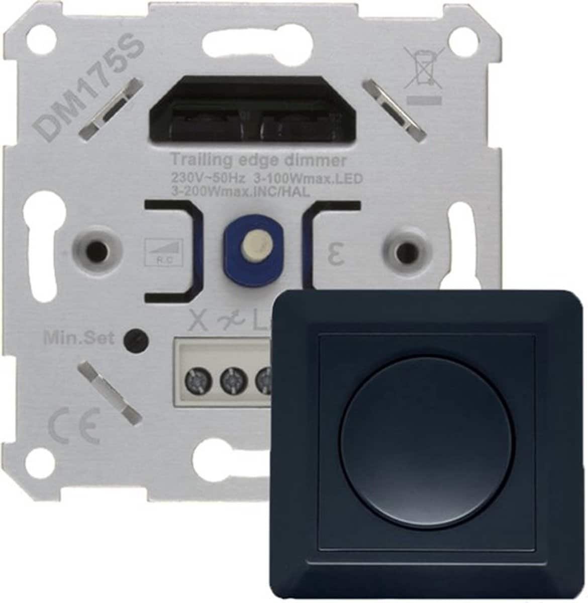 LED Dimmer – 3-200W – Universele LED Dimmer Inclusief Afdekplaat Zwart – Led Dimmer Inbouw – Dimmer Schakelaar – Dimmer afdekraam