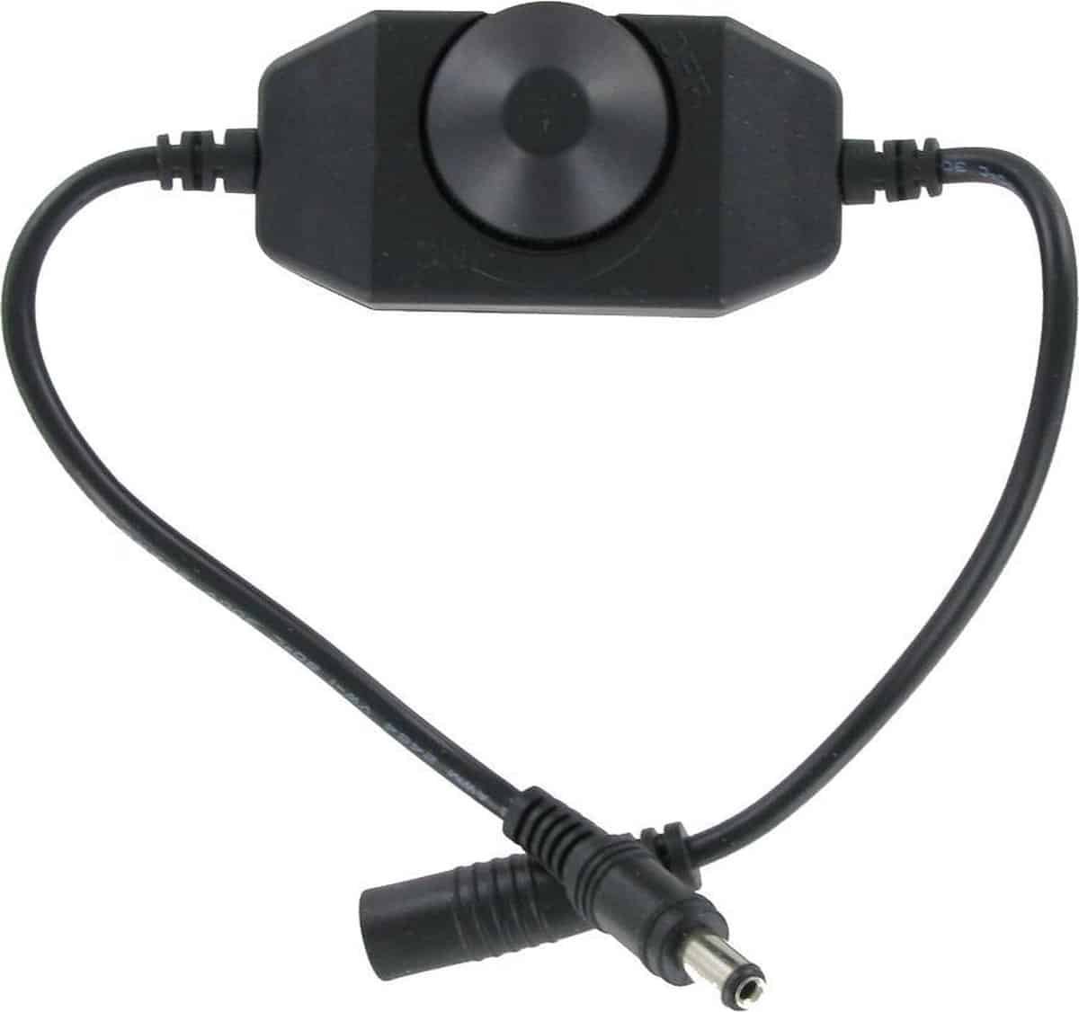 Dimmer welke gemakkelijk met 2 kliks tussen uw Led verlichting geplaatst kan worden. Met deze dimmer kunt u gemakkelijk het licht uitdraaien en bepalen hoe fel het licht wordt.