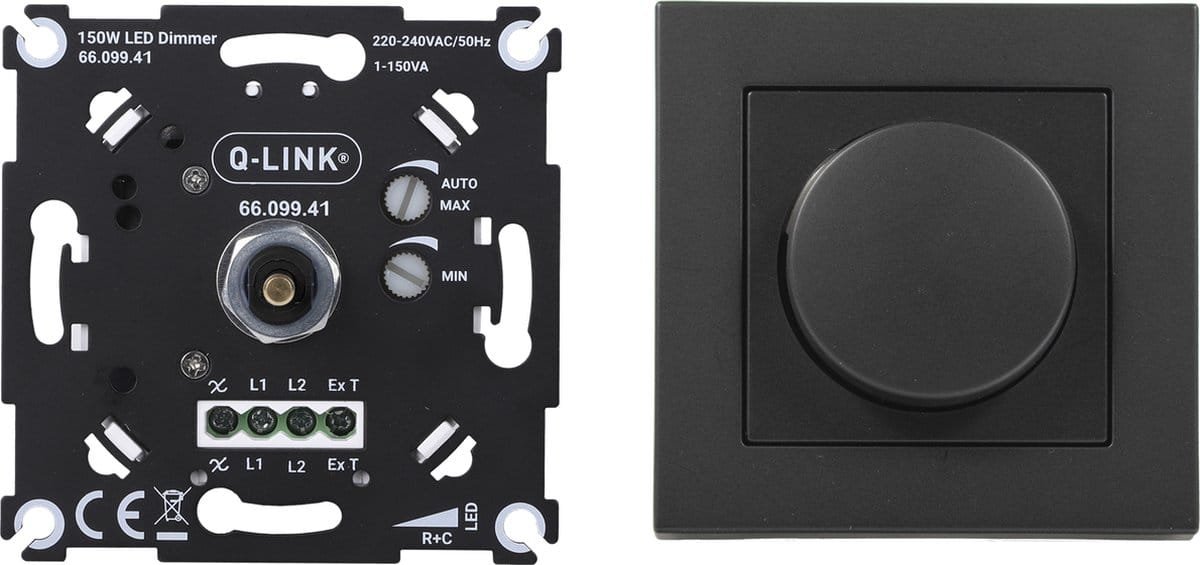 Q-Link dimmer LED – RC – druk-wissel – 1-150W – afdek element – zwart