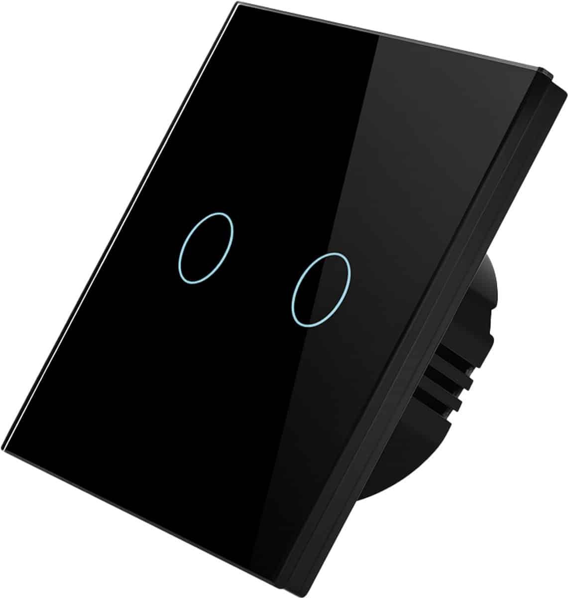 Smart WiFi LED Dimmer – Glazen Schakelaar – Zwart – 2 Lichtpunten – TrueLED