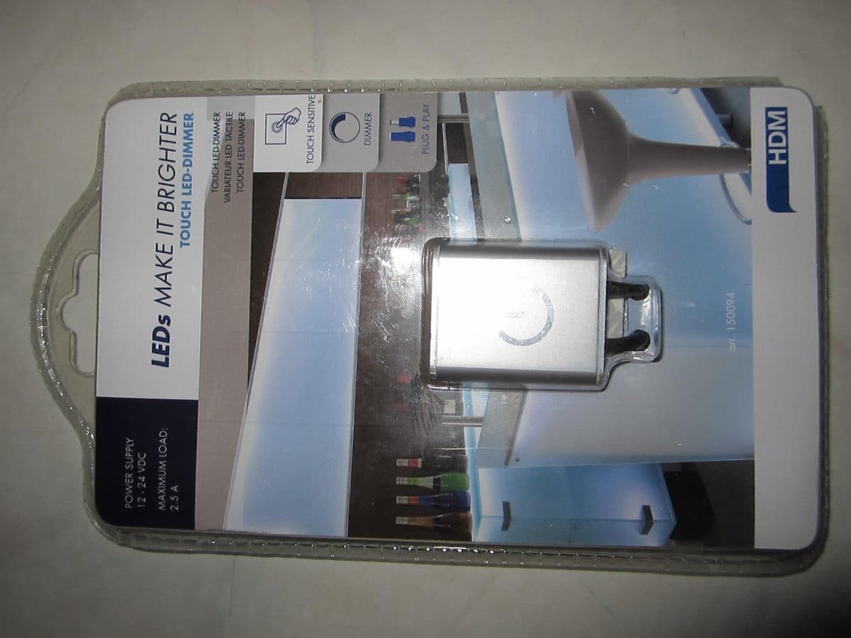 Leds make it brighter. Touch led-dimmer. Plug & Play. Power suplly 12 -24 VDC. Maximum load: 2,5A. Ideal for use with single colour LED strips. Double finction: switching: short touch (on-off)