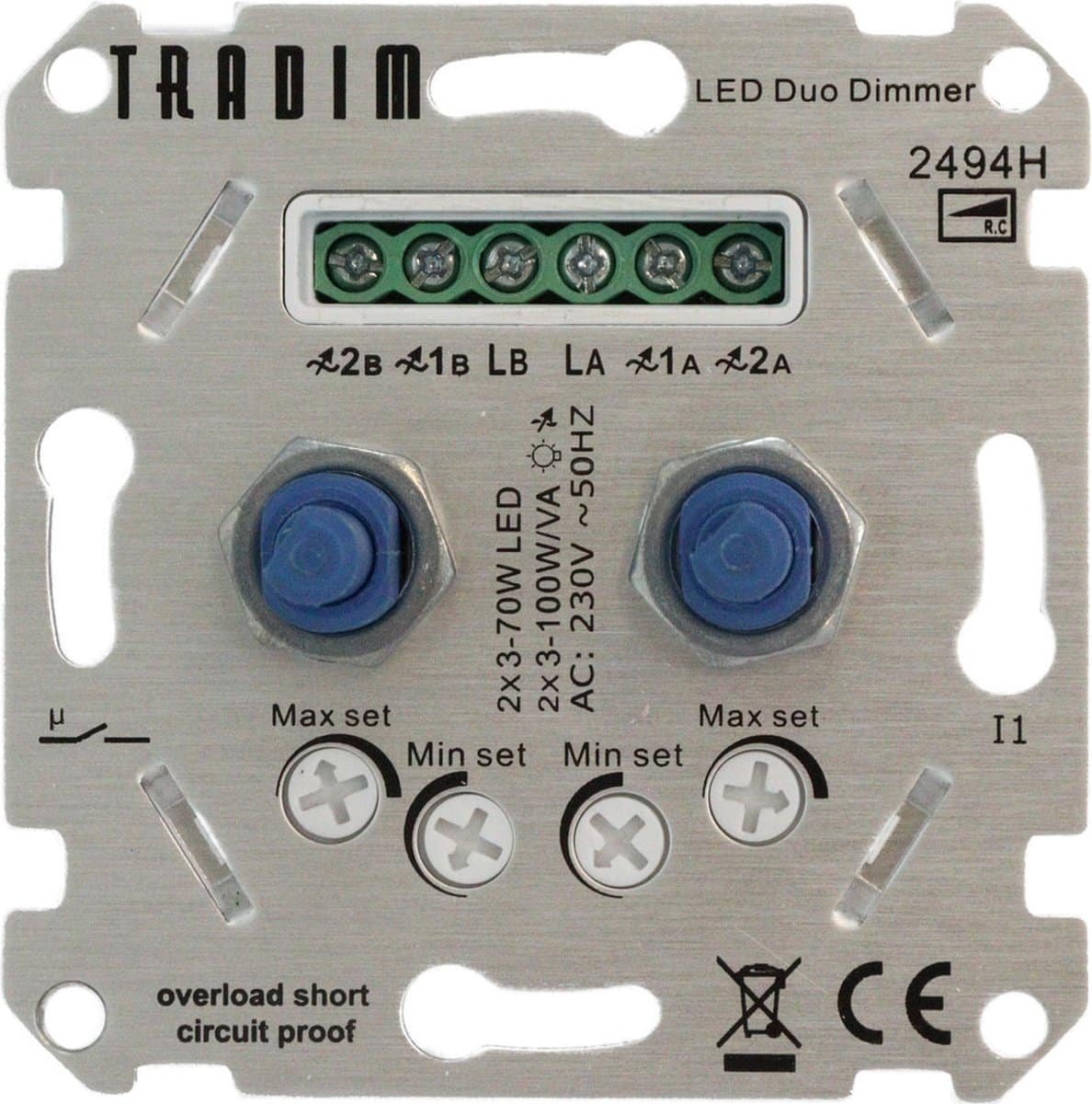 Tradim – LED Dimmer DUO inbouw – 1-100W – Fase afsnijding