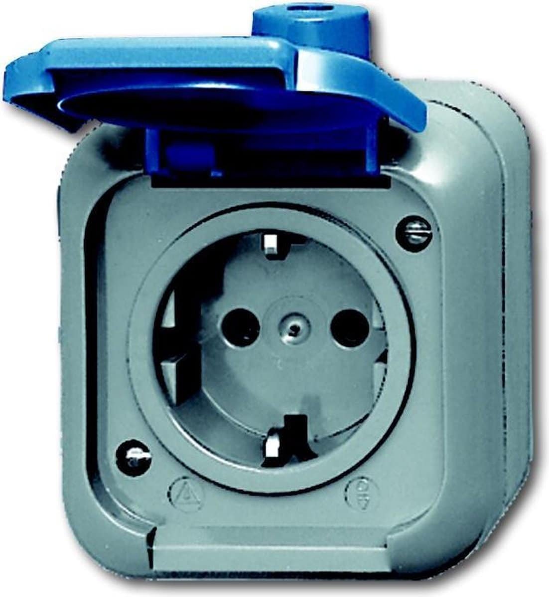 Deze wandcontactdoos uit de Busch-Duro 2000 WDI van Busch-Jaeger is voorzien van een klapdeksel en randaarde. Bovendien heeft het stopcontact een slagvaste behuizing en IP44-beschermingsgraad. In veeleisende omgevingen waar bijvoorbeeld agressieve stoffen voorkomen (ammoniak, benzine, oliën, vetten, schoonmaakmiddelen in de gebruikelijke concentraties) raden we het gebruik van kabelingangen 2070/2071 aan. Daarnaast heeft de behuizing van de socket een grijze kleur en de flip cover een blauwe kleur.