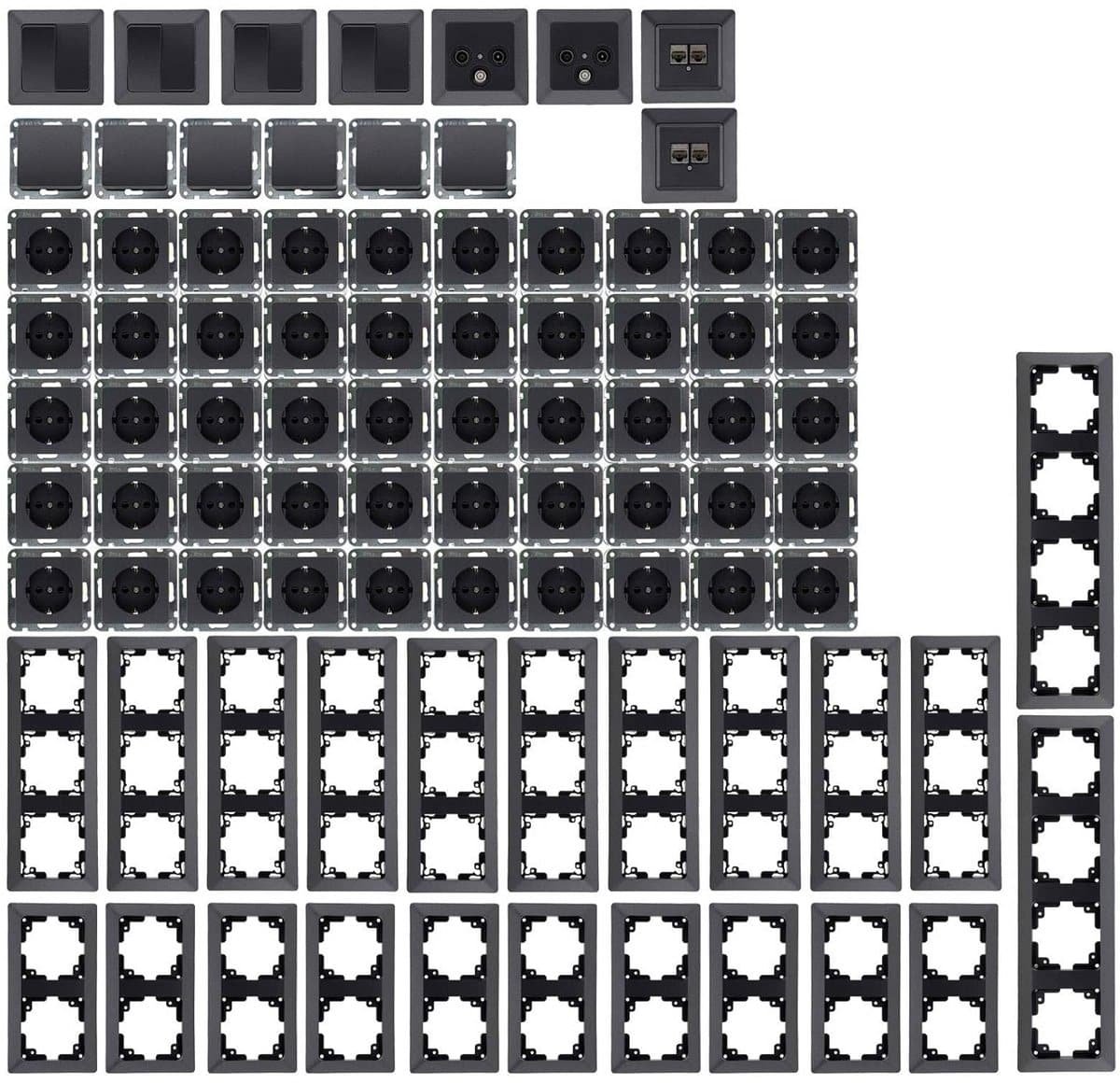 Complete Set Wandcontactdozen en Schakelmateriaal 94-Delig Inbouw Antraciet