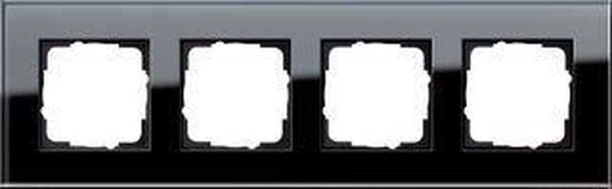 Dit 4-voudige glazen afdekraam uit de Esprit Glas serie van Gira heeft een zwarte kleur. Het afdekraam kan horizontaal en verticaal worden gemonteerd.