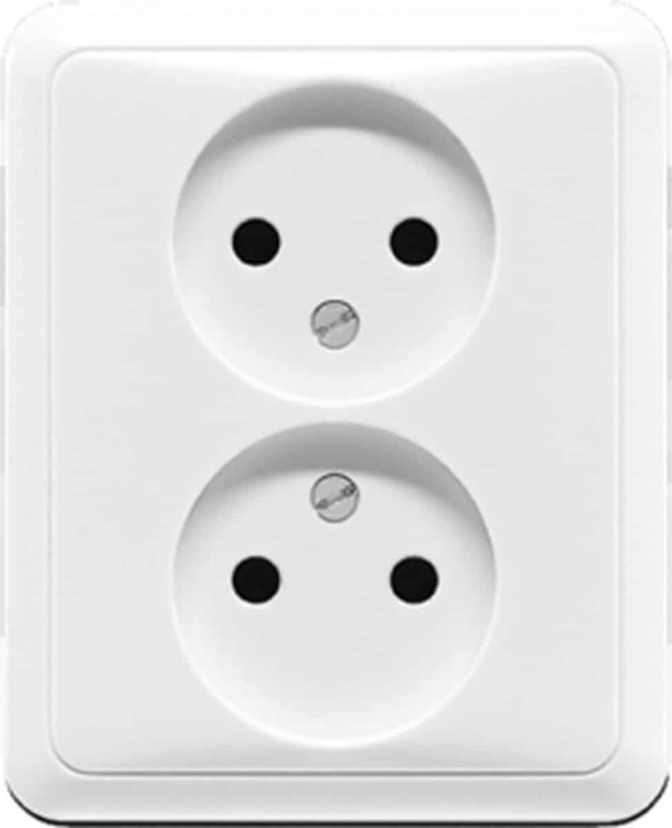 Jung ST550 wandcontactdoos (schakelmateriaal), kunststof, crème-wit/elektrowit, uitvoering zonder beschermingscontac, 2 eenheden, afdekking complete behuizing, opdruk/indicatie zonder opdruk, aansluitwijze steekklem, RAL-nummer 1013, speciale voeding geen speciale voeding, inbouw,