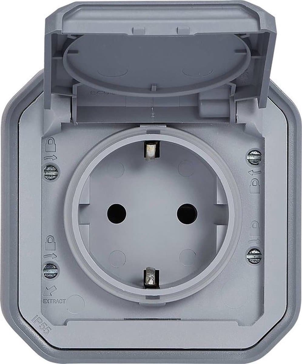 Legrand 069730L Compleet Spatwaterdicht schakelmateriaal Plexo Grijs 1 stuk(s)Plexo New vochtigheidopbouw geaard stopcontact insteekklemmen (SL) met verhoogde aanraakbeveiliging, IP 44, ik 08, in de kleur: Grijs De teksten voor dit artikel zijn automatisch vertaald.VEELZIJDIGE TOEPASSING: De eenvoudig ontworpen plexo geaarde stopcontacten voor vochtige ruimtes zijn perfect voor een moeiteloze en stijlvolle installatie in uw kelder, buiten, in uw garage of in andere vochtige ruimtes van uw huis. SYSTEEMOPBOUW: De systeemopbouw bestaat uit basisconstructie, inzetstuk, membraan, behuizing, afdekking en wandcompensatie. Deze componenten kunnen naar wens worden verbonden en maken een flexibele en individuele opbouw naar wens mogelijk. FLEXIBELE UITLIJNING: Door het uitkepen-draaien van het product en het aanbrengen van de afdekking kunt u bij uw plexo-gebruik eenvoudig met dezelfde opbouw- of inbouwbehuizing tussen een horizontale en verticale montage wisselen. Ontneembare INZET: De uitneembare inzet maakt een bijzonder eenvoudige montage mogelijk. Voor het vastklikken van het inzetstuk kan de bekabeling probleemloos los van de grondplaat worden uitgevoerd. COMFORTABELE BEDRADING: De geringe diepte van de grondplaat maakt een aangename bedrading mogelijk, zonder het gebruik van het basisdeel te scheiden. Door de royale bedradingsruimte wordt voldoende ruimte voor de bekabeling en installatie geboden. MONTAGE: De gelijkdraaiende schroeven vergemakkelijken de montage. Het gebruik is door het zijdelings indrukken van de knop te verwijderen, wat extra was flexibiliteit biedt. De kruisvorm aan de achterkant van de doos zorgt bovendien voor een versterkt oplegvlak. PUTZUIGUITGLEICH: Dankzij de Putzvereffeningsafdichting wordt een naadloze bevestiging mogelijk. De afdichting zorgt voor een schone installatie en compenseert vervormingen en oneffenheden op de bevestigingsvlakken probleemloos. BETROUWBARE AFDICHTING: Om een optimale afdichting te bereiken, is zowel de kabelinvoer aan de achterkant, de bevestigingsgaten en het membraan aan de zijkant voorzien van een afdichting en zorgen zo voor een optimale weerbestendigheid. HOGE BESCHERMINGSGRAAD: Dankzij de hoge beschermingsklasse IP44 (bij gesloten deksel IP55) – IK07 is het stopcontact zowel stof- en vuilafbestendig als bestand tegen spatwater. Het stopcontact beschikt ook over een volledige aanraakbeveiliging.Randaarde-standaard · Inclusief klapdeksel · Aanraakbeveiliging · Steekklemmen · 250 V/ 16 A · Beschermingsklasse IP44, IK07 · Kleur: grijs