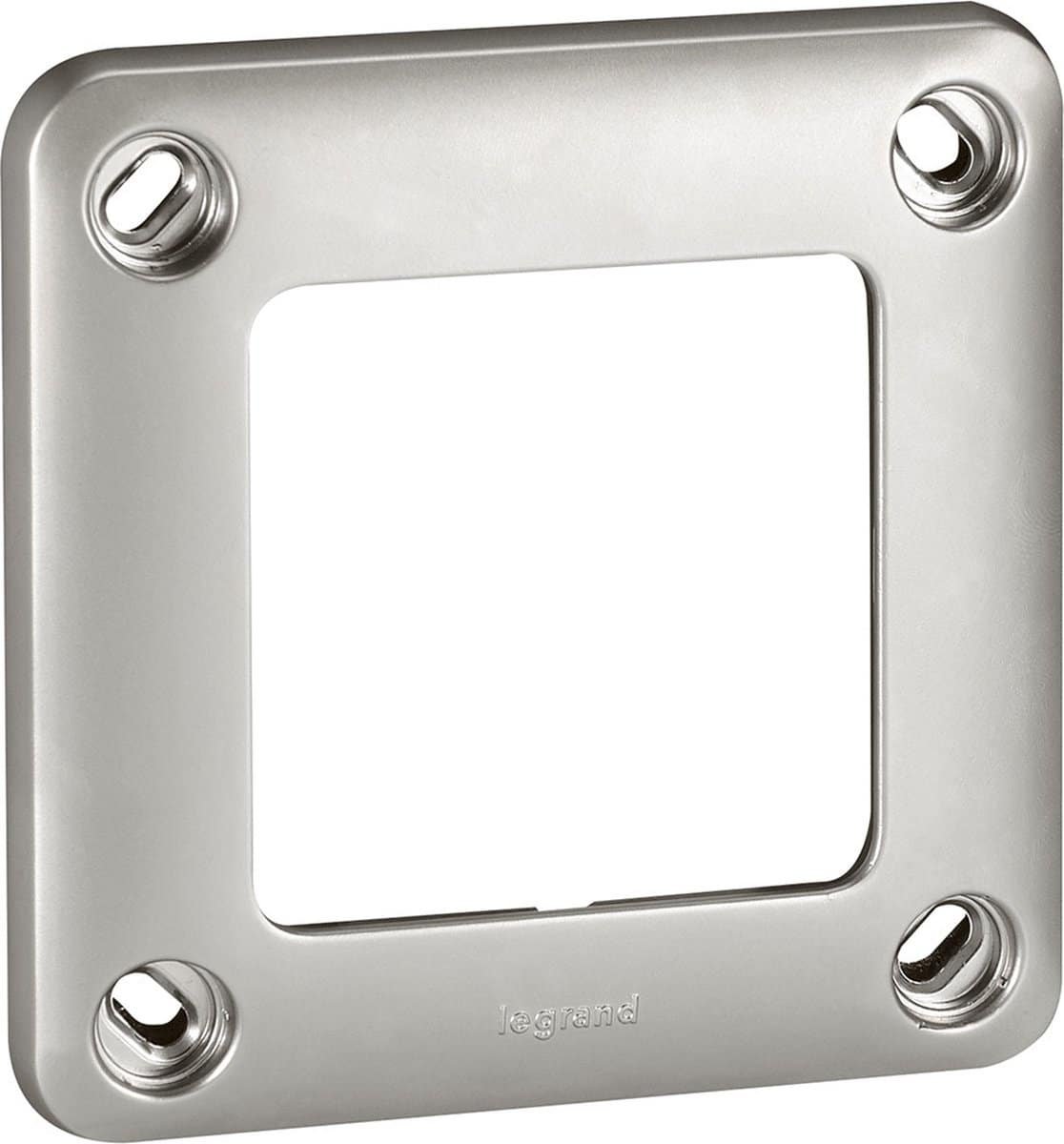 Legrand Soliroc Vandalismebestendig afdekraam schakelmateriaal, metaal, grijs, (bxhxd) 110x110x13,5mm, oppervlakteafwerking mat, montagerichting horizontaal en verticaal, 1 eenheid, RAL-nummer 9033, 1 eenheden horizontaal, 1 eenheden verticaal, 1 modules horizontaal (bij, 1 modules verticaal (bij mo.